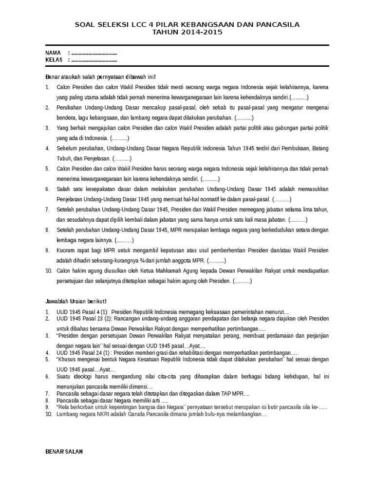 Soal Lcc 4 Pilar Sma - Trik Dan Contoh Soal Lomba Cerdas Cermat 4 Pilar Bangsa Pdf : Menyelenggarakan lomba cerdas cermat 4 pilar kebangsaan moda.